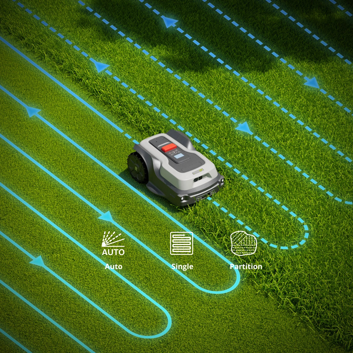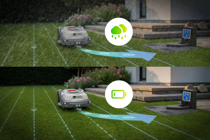 Kein Setup. Kein Aufwand. Kein Ablenkung. Ein Druck auf den Knopf genügt – der Rasen wird automatisch gepflegt.