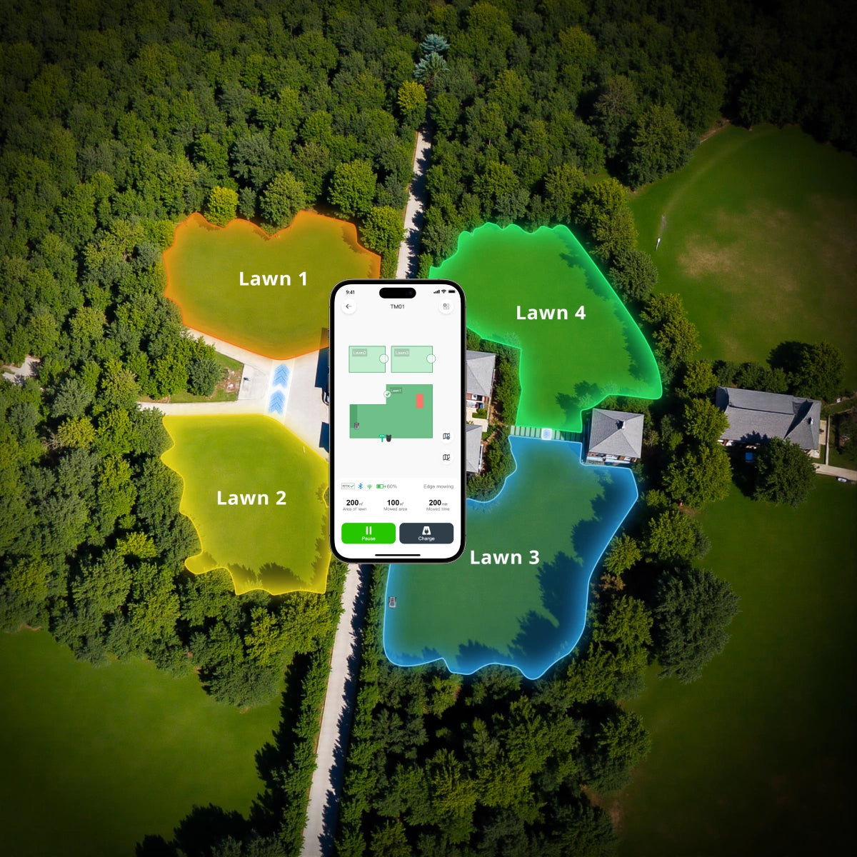 Geplantes Mehrzonenmähen: Mäht automatisch bis zu 3 Bereiche nach Ihrem Wunschzeitplan.