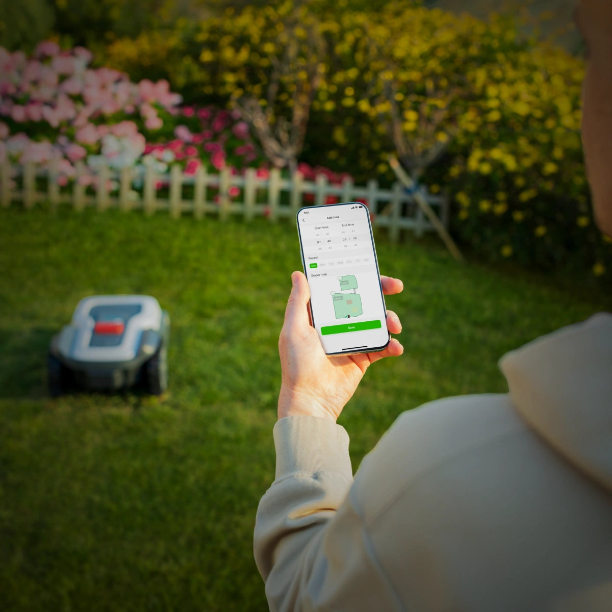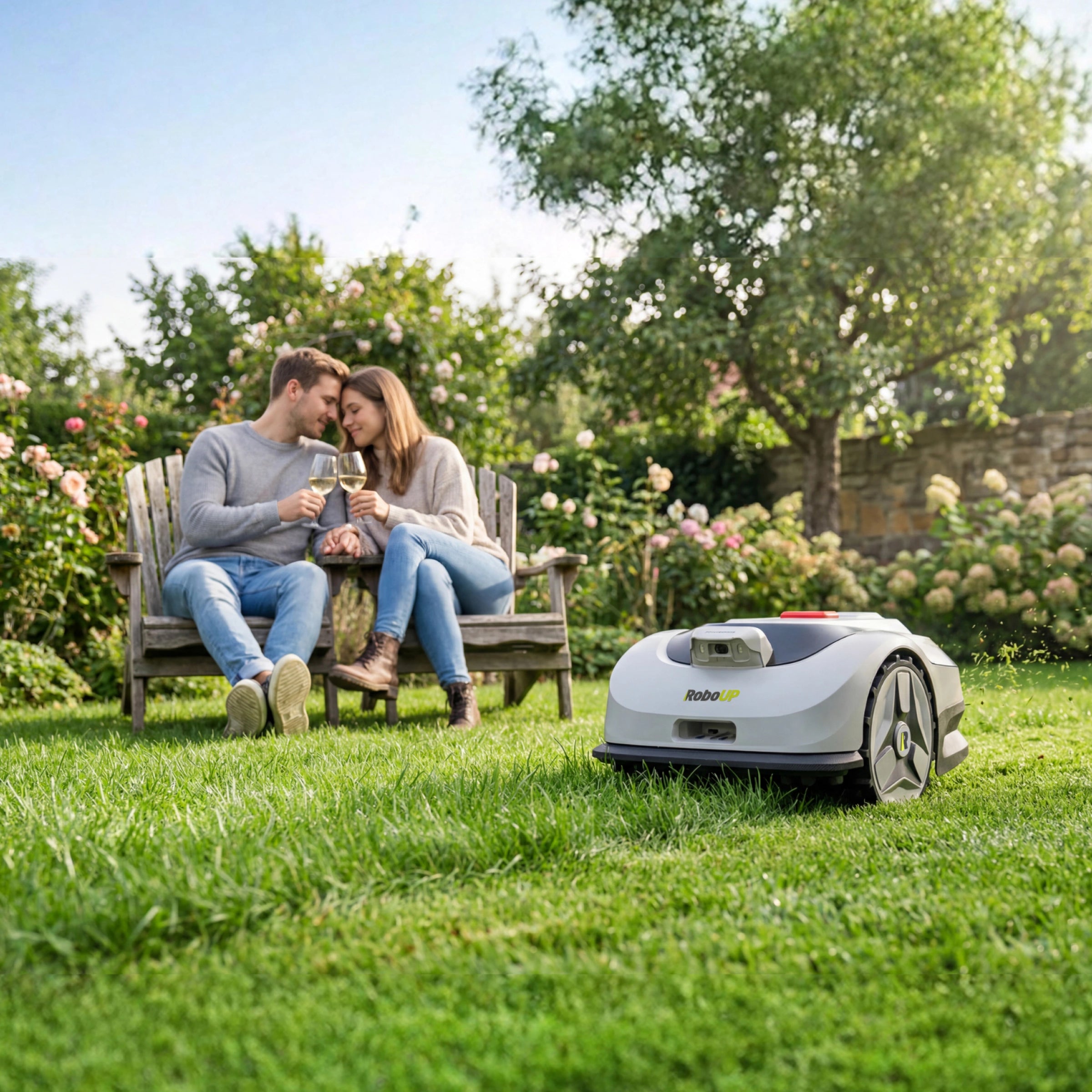 Ein Knopfdruck. Keine Einrichtung. Kein Aufwand. Nur dein Valentinstag – und ein Rasen, der sich selbst pflegt.