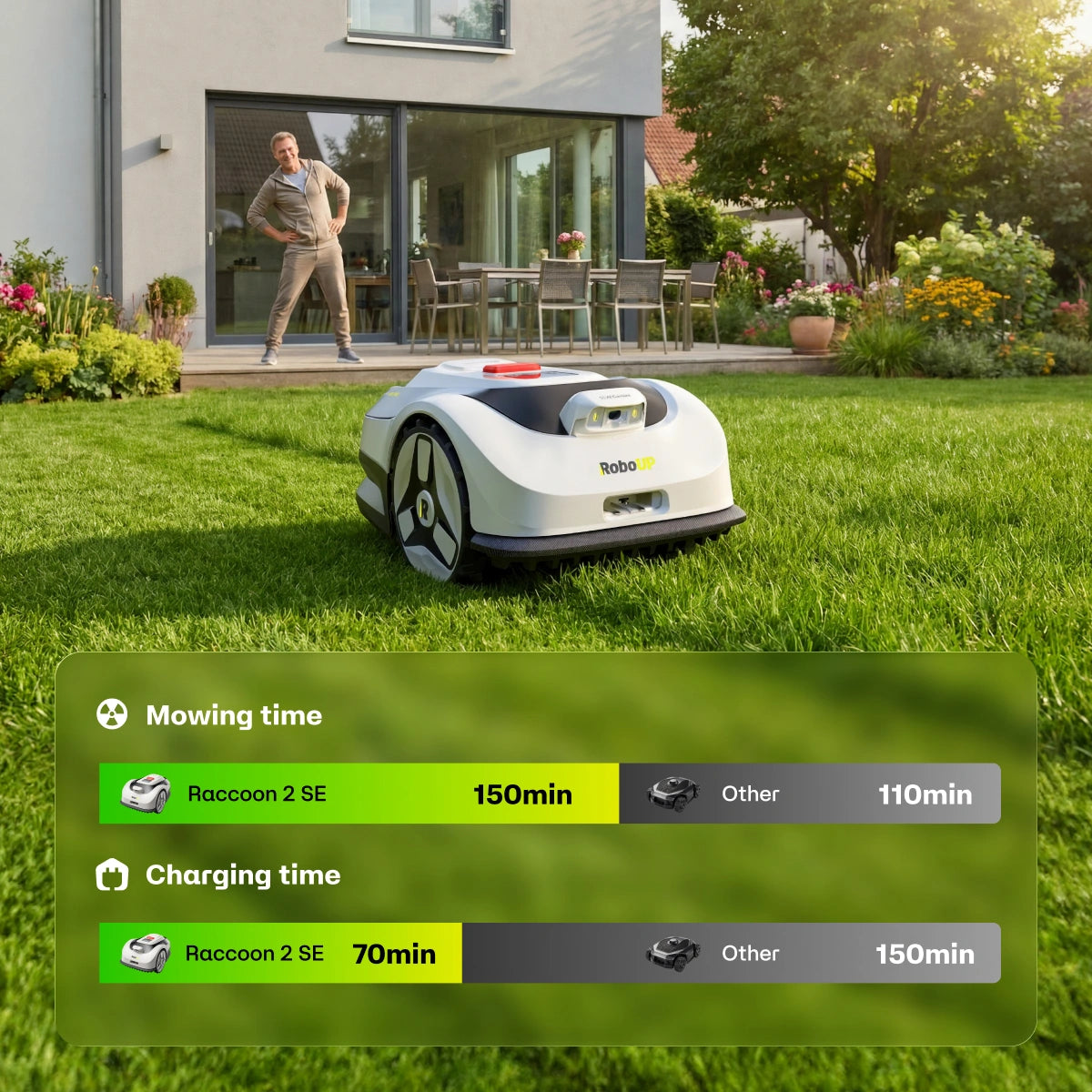 Getestet in realen Gärten von über 80 Familien in der EU und den USA – damit der Raccoon 2 SE wirklich zuverlässig und einfach zu bedienen ist.