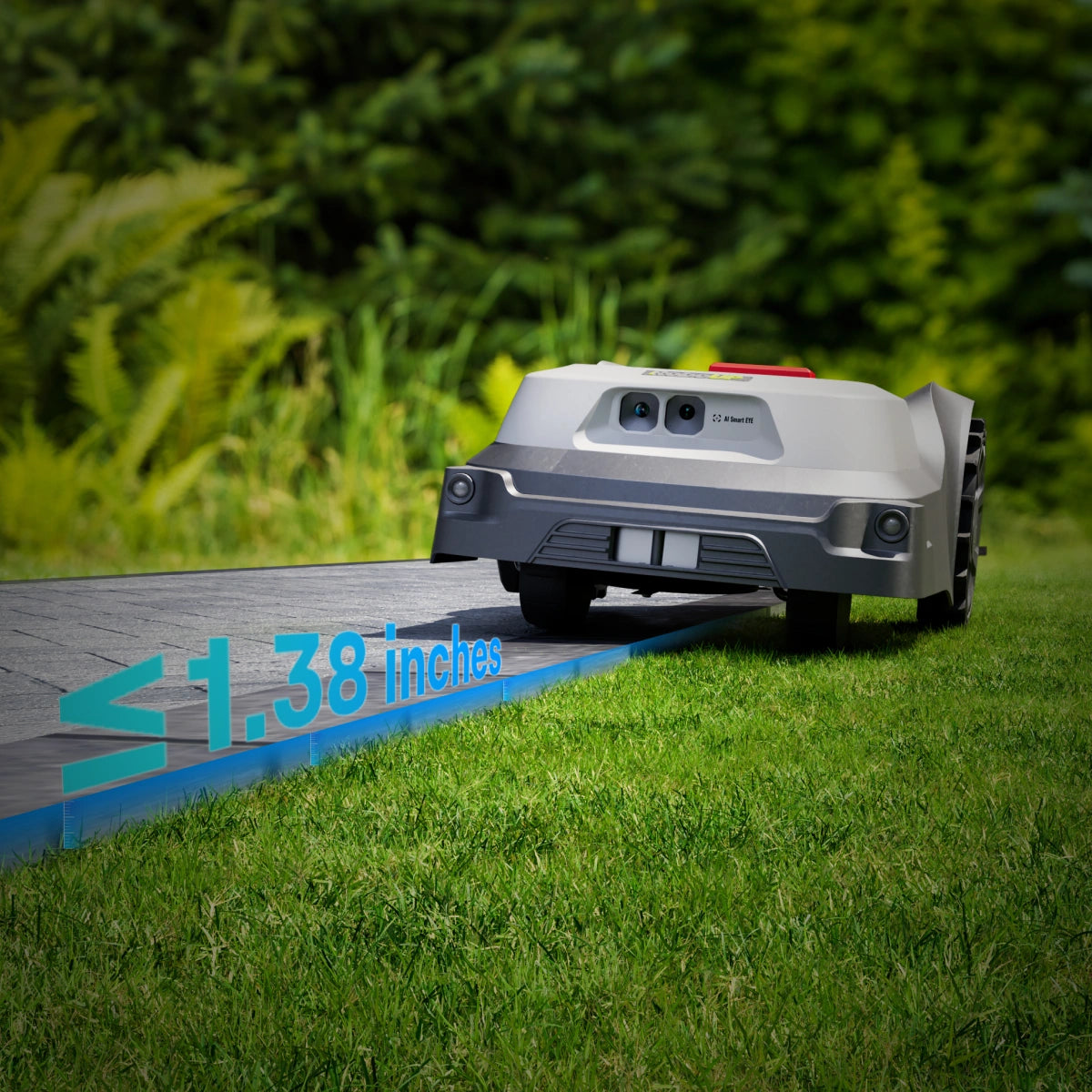 Für ebene Kanten (≤3,5 cm) fährt der Mäher sanft auf Gehwege und schneidet direkt bis zur Kante – für maximale Abdeckung.