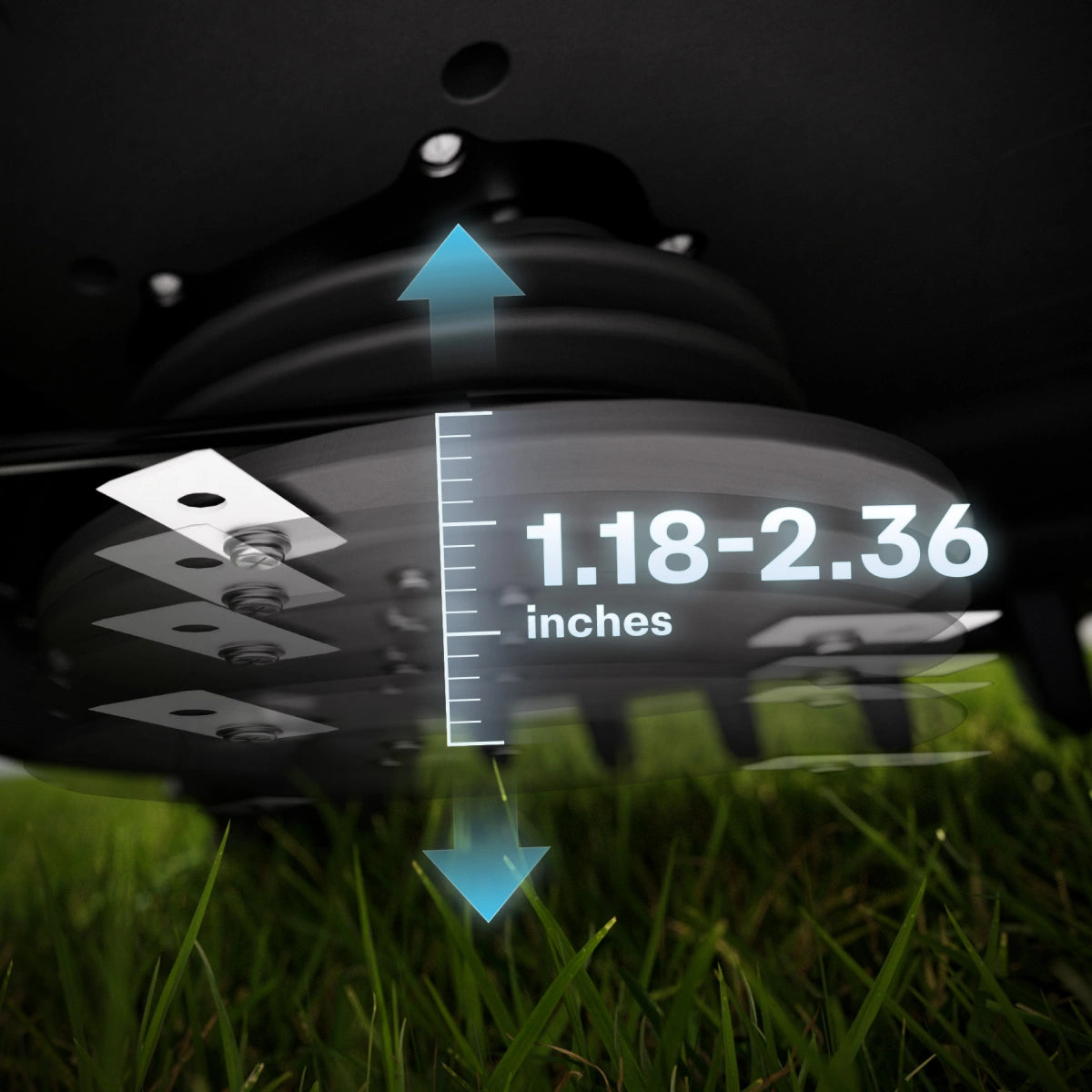 Elektrische Schnitthöhenverstellung per App, kein manuelles Anheben: Verstellbar von 3–8 cm, 12 präzise Stufen, jeweils 5 mm.