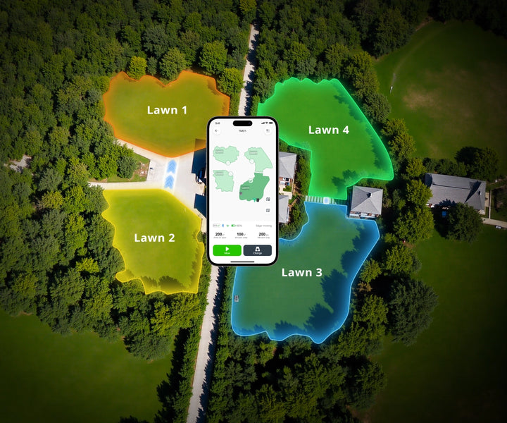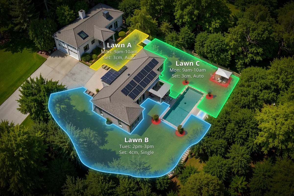 Erstellen Sie flexible Mähzonen, Sperrzonen, Durchgangszonen, Sicherheitsgrenzen und passen Sie Ihr Rasenlayout vollständig an.